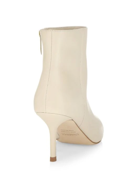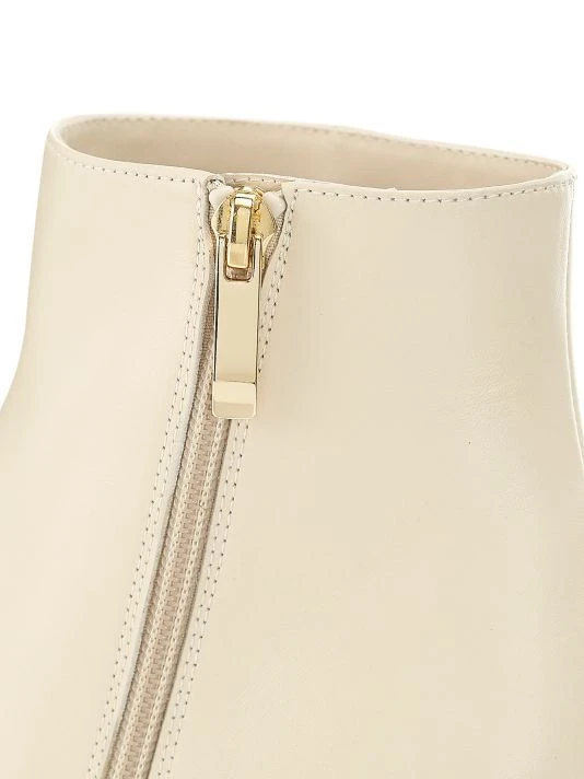 These glossy and supple leather boots are elevated with a contrasting metal heel.