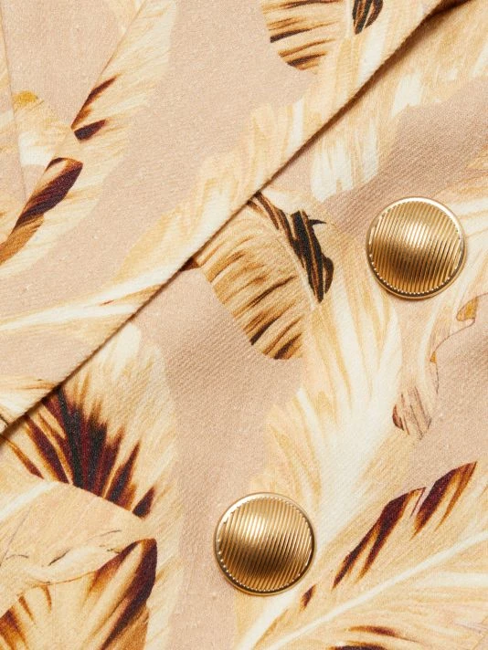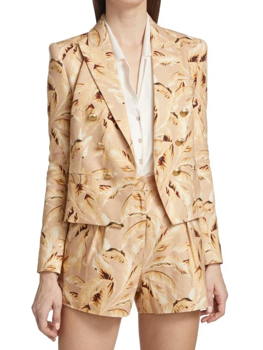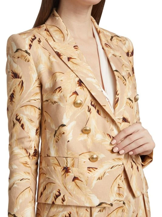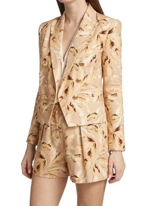 Crafted of a linen blend, L’AGENCE’s Brooke blazer has a cropped silhouette with decorative gold buttons and a leaf print.