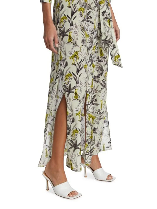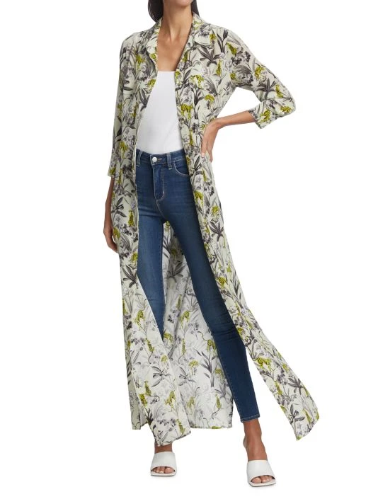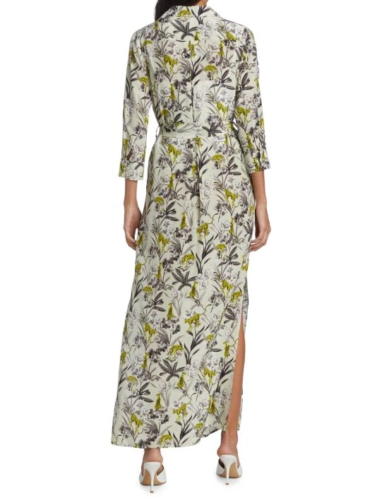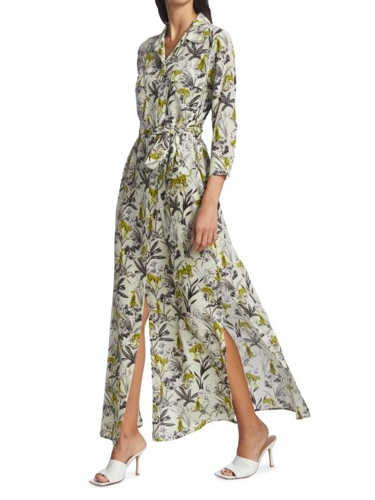This vintage-inspired maxi shirt dress is crafted of silk and features a removable belt.
