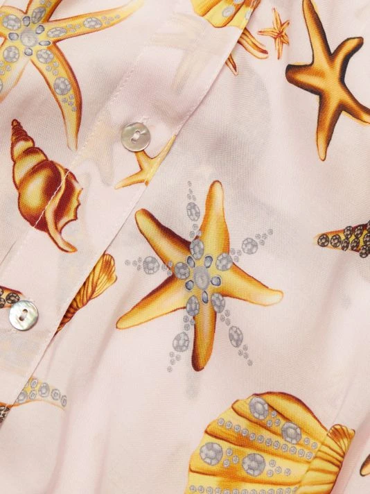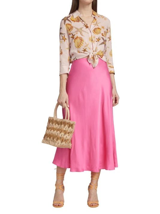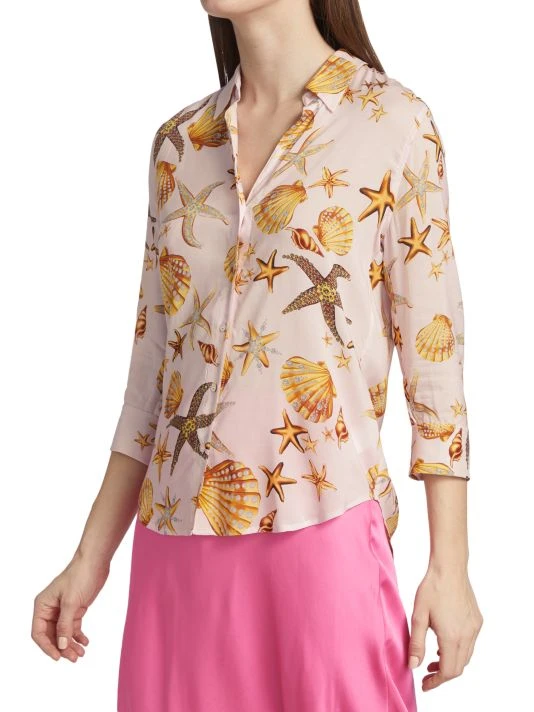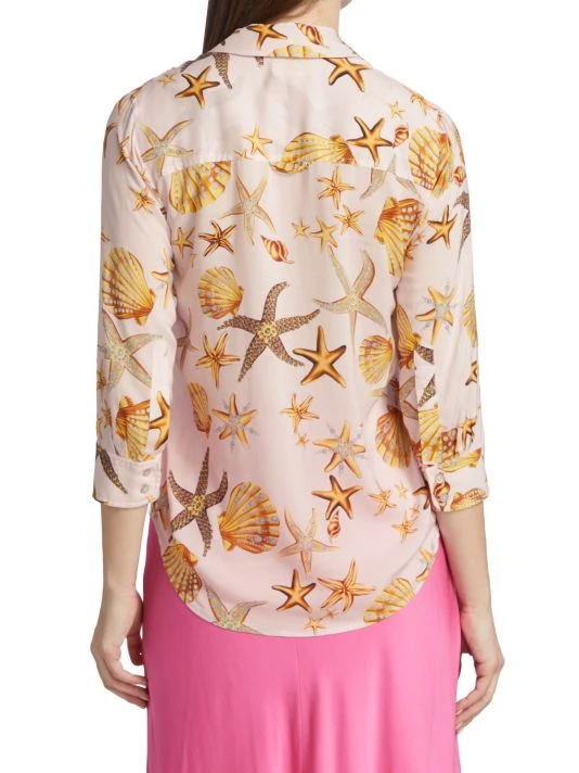 L’AGENCE’s Camille three-quarter sleeve blouse is adorned with a seashell print.