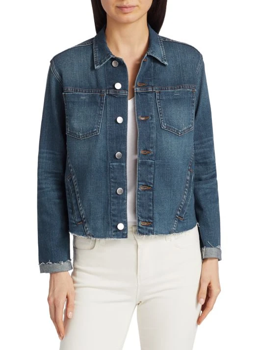 Stretch cotton-blend denim jacket detailed with raw edges.
