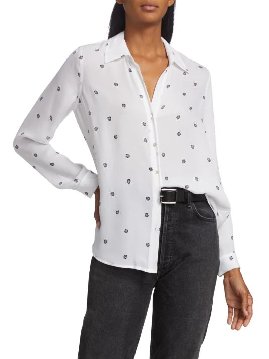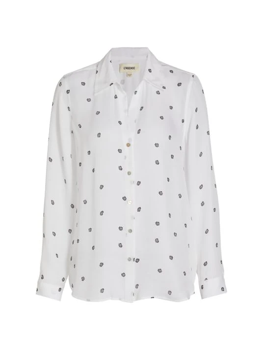 L’AGENCE’s Nina blouse is crafted of silk. Decorated with a rose print, this classic style features a point collar, long sleeves, and a button front.