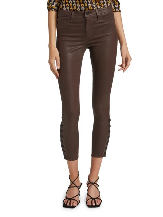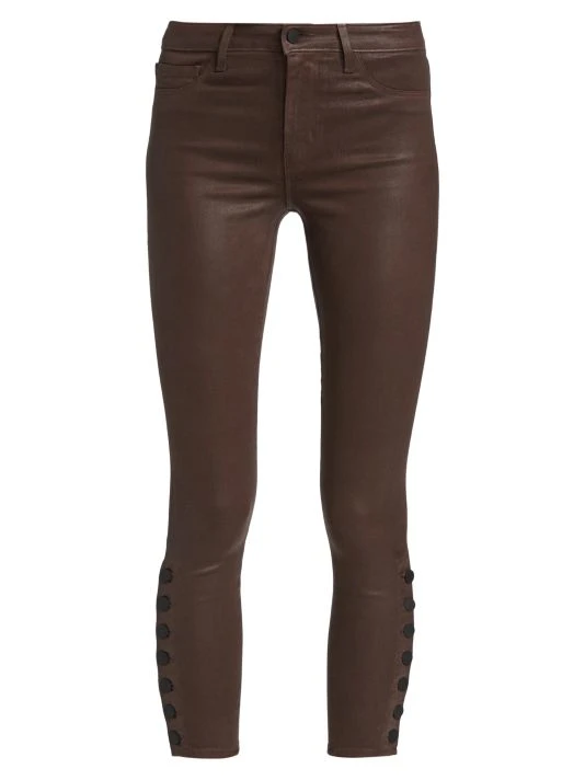Pleather skinny pants set with a high waist finished with button details at the cuffs.