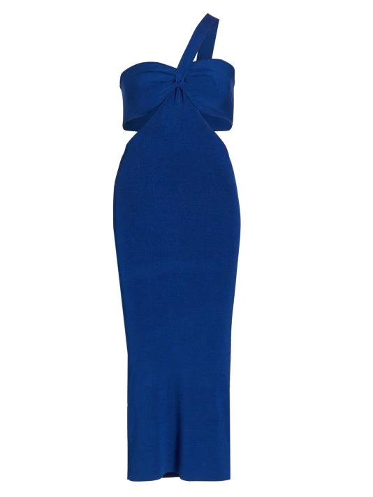 L’AGENCE’s Raya midi-dress is adorned with a one-shoulder neckline in a knit bodycon silhouette.