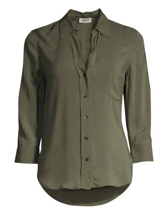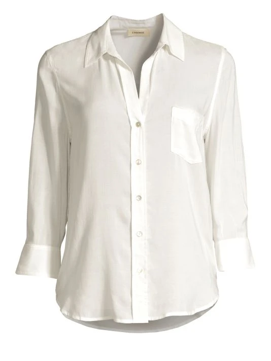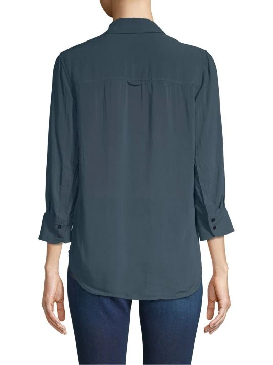 Chic and simple lightweight blouse with three-quarter length sleeves.