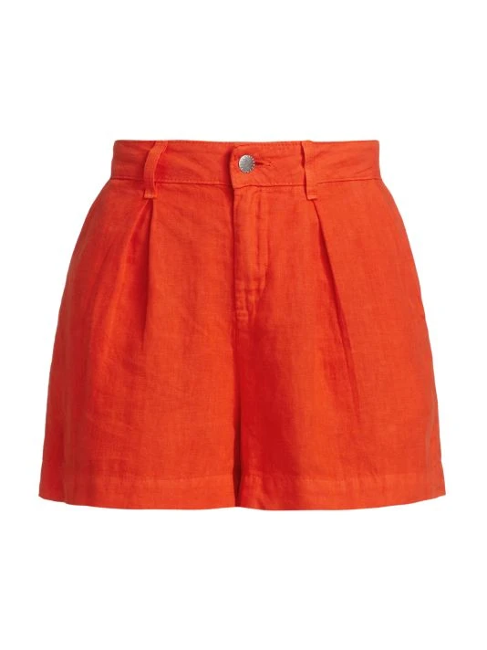 Inverted front pleats shape these linen shorts, designed with an easy wide leg.